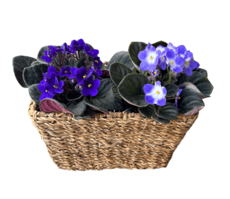 אדנית עץ מרובעת קטנה עם אנטוריום וכמדוריאה