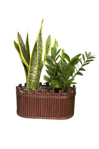 אדנית עץ מרובעת גדולה עם סנסיוריה וזמיה