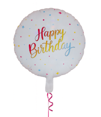 בלון HAPPY BIRTHDAY לבן עם כיתוב צבעוני