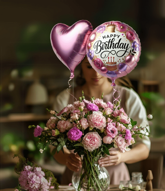 פריסטייל ורוד בגודל רגיל  לצד צמד בלונים